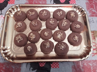 Dopo aver mescolato bene il tutto formare delle palline e disporle su della carta forno; con il dito schiacciare un pò al centro ciascuna pallina per formare una bella "fossetta".